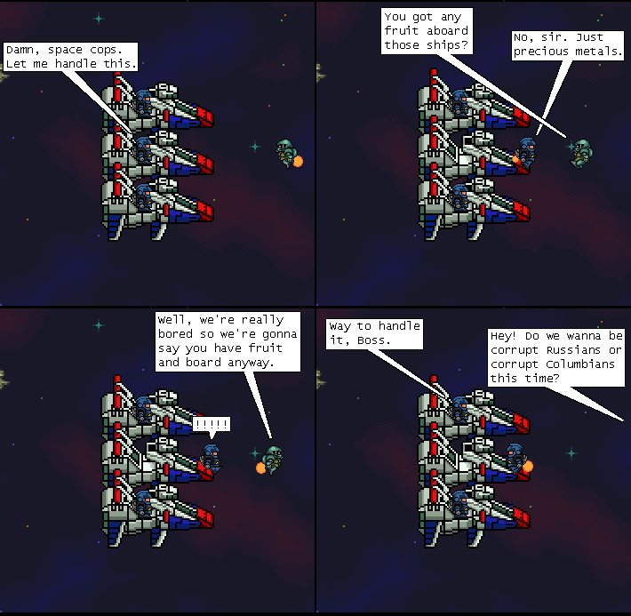 "Madam secretary. A moment of your time!" a young Zeon desk jockey called from behind Secretary of Defense Veronica Wu. Veronica stopped just outside the entrance to her ship's, the Athenas Might, hangar. She could just ignore the shrill voice that bombarded her ears and proceed inside the hangar, pretend she didn't hear the paper pusher until it was too late. Unfortunately, such behavior was not becoming a woman in her position, and duty forced her to acknowledge the grunt. "Thank... you... for stopping." the young woman gasped for breath between words. Veronica stood patiently. She needed to leave soon, otherwise the Athenas Might would be reset to the bottom of the scheduled departures list for the day. "You're... departure request... you only stamped it 4 times. It needs a 5th stamp to be filed and approved.” the woman explained, flashing a small paperback book's worth of forms that bared Veronica's handwriting. Veronica remained silent, but raised an eyebrow at the woman. Dejectedly, she snatched the forms and a stamp from the woman's hand. Veronica turned to the hangar door and slammed the stamp against the form, then tossed the book back to her. "Thank you again. I'll file these with traffic control right away. I'll even upgrade it to a priority order. We should have you clear to launch in 14 to 16 hours. Thank you again, sir... er... ma'am.” The woman struck a salute then bolted to her station again. Veronica stood stern until the woman was clear of her sight. Now alone in an empty hallway, Veronica was free to vent her frustration. "14 to16 hours.” the normally quiet woman whispered before she punched the hangar door. Still frustrated, she pulled a phone from her uniform's pocket "Hi Winny. It's Mommy...” ![]()   • Veronica Wu: 1VP gained, No Damage   ![]() ![]()   • Jeremiah Black: 1VP gained, No Damage Nothing but lush vegetation and rocks. That's all she saw throughout the hot african day. Colonel Belanie Reece lowers the binoculars from her face with a sigh. She is standing on the shoulder of the GP03 Stamen. The Gundam is crouched in a ravine, trying to stay hidden from the Zeon fortress. The colonel walks around to the back of the head of the GP03. She squints in the sunlight. "Sergeant Maheart!" she shouts into the ravine," get ready to take cover! It's almost time!" A grease-smeared head poked out of an access panel. Scarth "(>o.O)>" Maheart lifts the welding mask from his face. "Not to worry colonel! We can finish the repairs even through the bombardment." "Let's hope that's the case," mutters Reece to herself. A low sound came over the horizon. The EFF colonel hops back over to the front of the GP03. "Here it comes." This time, the underground mountain fortress of Kimberlite struck first. One of the four Artillery Howitzers booms, sending a shell into the far off EFGF naval fleet. The other three Artillery Howitzers stood ready with their ordinance close. Several kilometers away, sailors ran to their battlestations. The 2nd Indian Ocean Patrol Fleet went to general quarters as klaxons scream their song. In the skies above, the Medeas and their air formation broke away to give room for the passing munitions. Water splashes as Zeon artillery shells straddle the armada. Then, in thunderous reply, the Vertical Launch Systems of the Hillocks let loose their payloads. As the missiles begin their ascent, the twin 350mm cannons of the Himalaya belch fire and brimstone. Back at Kimberlite, the mobile suits are bracing for an attack on their forward trenches. Dozens of mono-eyes watch the distance for the colors of EFF mobile suits. But nothing came and soon the sky fell. Missiles and shells pound the Zakus and armor vehicles. Caught outside their fortified cover, the Zeon pilots and soldiers could do nothing but ride it out and take whatever cover they can. Hell rain down on them relentlessly. The 2nd Indian Ocean Patrol Fleet didn't have it easy either. All four of Kimberlite's Artillery Howitzers have a bead on one of the Hillocks. Shells straddle the Ardent, scoring repeated hits on its superstructure and decking. The exchange of long range firepower would go on for another fifteen minutes. As the final sounds of the bombardment fade away, both sides move quickly to control the damage. On Kimberlite, surviving units are pulled back inside the interior and engineering teams salvage what they can from the wreckage. Back at sea, the Ardent is pulled to the rear of the fleet as fire control teams do what they can to keep the Hillock operational. At that point, another day ends. ![]()   • Belanie Reece: 1 VP gained, No Damage   • Scarth "(>o.o)>" Maheart: 1 VP gained, No Damage |