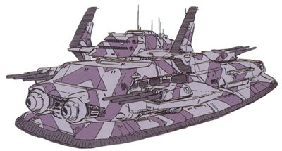 Weight: 1600 Metric Tons Armor Materials: Titanium Alloy Crew Compliment: 42 Crewmen Dimensions   • Length 98 meters   • Width 85 meters   • Height 43 meters Attributes   • Class: Hovercraft   • Speed: Terrible   • Maneuverability: Terrible +   • Armor: Good - |