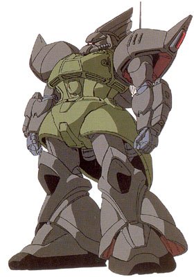 The Gelgoog is the Zeon's firm and deadly response to mass-produced RGM-79 GMs employed by the Federation. It is extremely fast and maneuverable, and arms a number of powerful weapons. Due to its ingenious universal hand plug, it can use virtually any Zeon or Federal weapon. Its standard armament includes a powerful and highly accurate beam rifle, more or less the same as the RX-78 Gundam's, a beam saber, and a large shield, capable of covering its entire body. Two verniers equipped in the Gelgoogs forearms can be removed for heavy 110mm machineguns for ground combat. The Gelgoog is extremely mobile, powered by nine (seventeen in the case of the High Mobility Variant) large thrusters. Numerous apogee motors and other jets stipple its body, giving it unprecedented maneuvering ability. It is also decently well armored, though still not quite as tough as the Lunar-titanium equipped Gundam. A lower cost space only version of the Gelgoog, dubbed the Gelgoog Marine, was instated for the SAF in the latter weeks of the war, although it didn't become the more popular model until afterwards, when spare parts became an issue. The Gelgoog Marine is actually slightly faster than the original, and can arm the Gelgoogs twin 110mm arm mounted machinecannons without removing any thruster assemblies. However, it is not as customizeable, and is only optimized for space combat. |