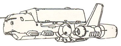 About half the size of Federation cruisers, the Riah Patrol Ship is designed with maneuverability and versatility in mind, able to engage either warships or mobile suits. Because of its size it can maneuver very well compared to a Salamis or a Musai, and is still reasonably well armored. A large hangar for a ship its size houses two mobile suits as well as two space fighters. What it has in maneuverability and hangar space however, it lacks in brute force. Because of its size, the Riah Patrol Ship is deficient when it comes to its mega particle cannons. Two small MPC turrets make up its anti ship weapons capacity. A second pair of more new age MPC turrets are armed above the bridge. These fast targetting weapons have about the strength of a mobile suit beam rifle, and a quick rate of fire. They are chiefly designed for downing enemy mobile suits, but can be used against warships at closer ranges as well. All in all, the Riah Patrol Ship is not well suited for large scale engagements, but meets the role it was designed for quite well - emergency defense of Side 6's colonies. |