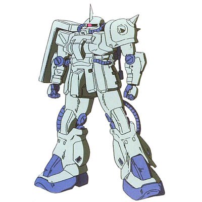 The Zaku II F2 carries very traditional Zaku armaments, including the Heat Hawk and cracker grenades, and options to store missile launchers or sturm fausts on the legs. In addition, the Zaku II F2 was rolled out with improved anti-mobile suit weaponry, including the Zaku Kais MMP-80 machinegun and a new model 120mm machinegun with the rare ability to fire multiple types of shell. The F2 is an improvement over the traditional F type in many ways, not the least of which is its weaponry. It is considerably lighter, mounts an improved reactor, and much more powerful directional thrusters, making it more maneuverable in space and giving it a much better ability to make boost-assisted jumps on land. Its armor is equivalent to the Zaku II Fs, although the armor around the cockpit has been increased. Further, the F2's cockpit has been redesigned, the newer model giving much better overall control of the mobile weapon. Although it was released late in the war, the Zaku II F2 was a considerable improvement over the Zaku II F, and considerably easier for green pilots to use, making it a much needed asset for late-war Zeon. Zeon designs typically include a limited production Commander S type unit, which tends to include additional thruster and sensor capacity. |