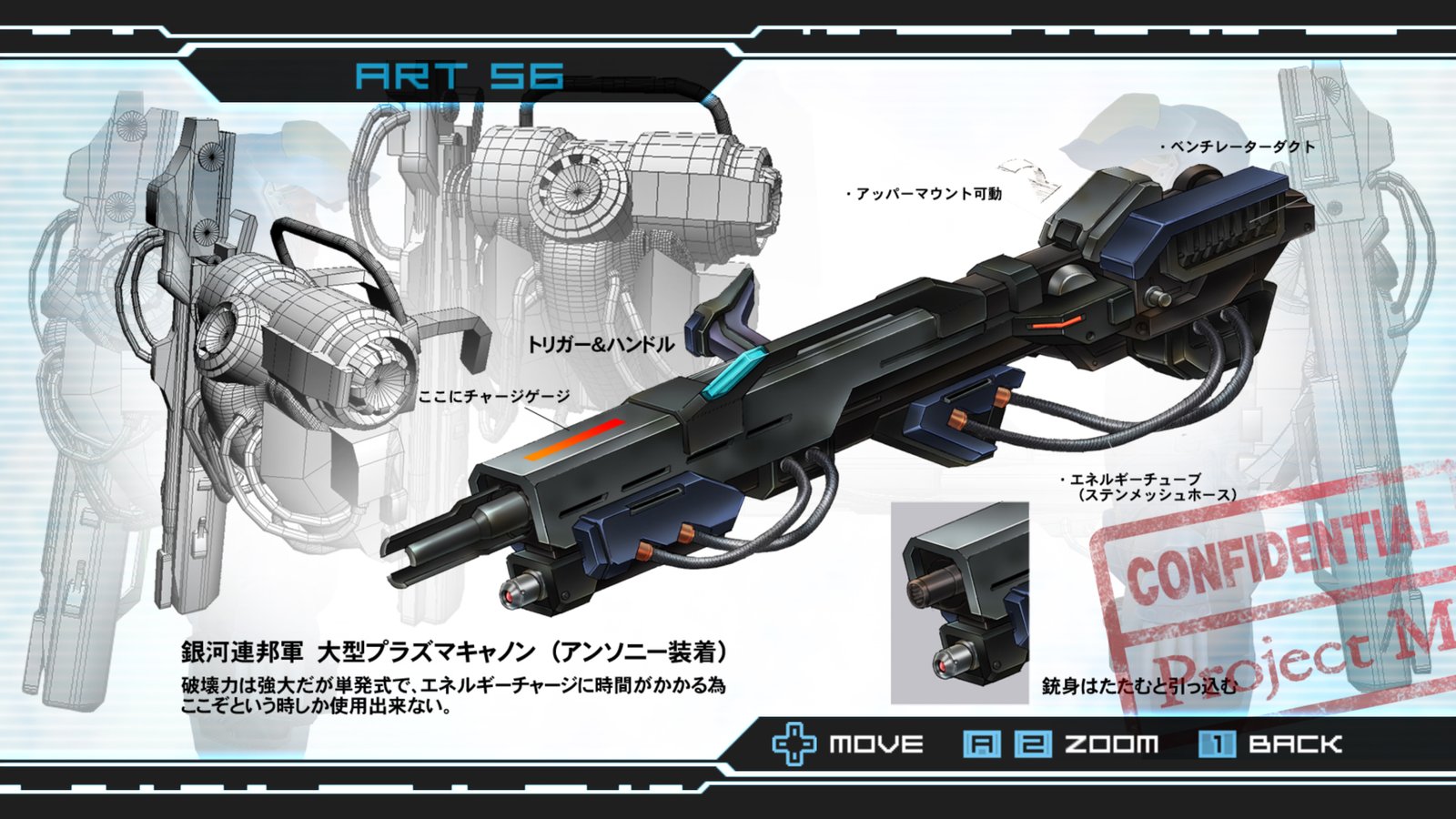 Function: A super heated burst of linear energy fires from a fully charged cannon, however the backpack battery takes 3-5 minutes between each shot to charge.