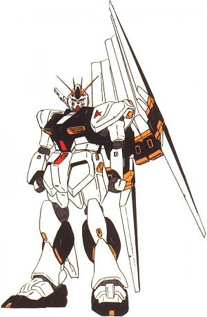| Nu Gundam Pilot: Keeno Kinobe Combat Type: Ranged Performance: Max Thruster Acceleration 1.55 G Armament: Dummy Launchers (in hands) Birdlime launchers (in hands) Psycoframe Cockpit Frame 2 x Vulcan Gun (fire-linked, mounted in head) 1 x Large Beam Saber (power rated at 0.85 MW, stored in recharge rack on backpack, hand-carried in use) 1 x Beam Saber (stored in recharge rack in left forearm, hand-carried in use) 1 x Shield (mounted on left forearm, mounts 1 x Beam Cannon (power rated at 7.8 MW )and 4 x Small Missile) 1 x Beam Rifle (power rated at 3.8 MW, powered by rechargeable energy cap, with attached Grenade Launcher, 1 round) 1 x Hyper Bazooka (clip-fed, 4 rounds per clip plus 1 round in chamber, can be stored on backpack storage rack) 6 x Fin Funnel (stored on backpack storage rack) |