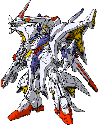 | Xi-Penelope Gundam Pilot: Kori Miamoto Performance: Maximum Thruster Acceleration 6.7 G Combat Type: Ranged Armament: Quasi Psycommu System Psycho-Frame Cockpit I-Beam Barrier 1 x Beam Machinegun 2 x Funnel Missile Rack 2 x Missile Launcher (mounted in elbows) 2 x Missile Launcher (mounted in knees) 8 x Missile Launcher (mounted in shields) 2 x Large Beam Cannon (mounted in shields, power rated at 12.4 mW) 1 x Salamis Class Main Gun (optional weapon) 2 x Small Shield 2 x Beam Saber 4 x 60mm Vulcan Gun (head mounted, fire-linked in use) 6 x Funnels (each mounts 1 x Beam Gun, power rated at 6.2 mW) 1 x Sand Barrel (sends out Anti-Lock frequencies, preventing enemies from locking on to the Xi while it is in use) |