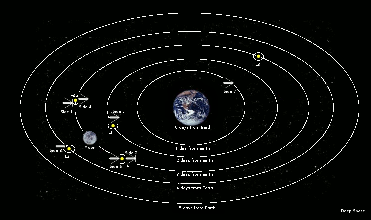 The map of the Earth Sphere is divided into three types of area. Territories, Locations, and Compounds. Locations exist inside Territories, and Compounds can exist inside Locations or Territories. It is only possible to move from one area to an adjacent area. For example, Side 4 is a Location inside the Territory 2 days from Earth, and Texas Colony is a Compound in Side 4. It takes one move action to move from 2 days from Earth to Side 4, and then another action to move from Side 4 to Texas Colony. The reverse is also true. Clicking on the map above will toggle between the Space map and the Earth map. Earth Sphere 0 days from Earth 1 day from Earth 2 days from Earth 3 days from Earth 4 days from Earth 5 days from Earth Note: The Asteroid Belt, Mars Sphere and Jupiter Sphere have their own territory lists, but as these are not of severe importance to the RPG, they are listed on their own pages. Earth: North America, South America/Straight of Magellan, Arctic, Antarctic, South Africa, Europe, North Africa, Middle East, East Asia/Oceania, Australia 0 days from Earth: Earth Orbit 1 day from Earth: Side 7 2 days from Earth: Side 5 3 days from Earth: Moon, Side 1, Side 2, Side 4, Side 6, L5 4 days from Earth: Side 3 5 days from Earth: Deep Space Earth Earth operates a little differently from other territories. You can never just be on "Earth", you are always on one of Earths locations. Earth locations can only be travelled to from the Earth Orbit location at 0 days from Earth. Earth orbit is considered to be adjacent to every location on the Earth map, although there are certain restrictions on moving through Earth Orbit. Note: Because the Earth is a sphere and the map is a rectangle, what is adjacent to what at the edges is not properly shown. North and South America, Australia and East Asia are all adjacent to one another. North Africa, Europe, South and North America are also all adjacent. Earth Orbit In order to leave Earth and enter Earth Orbit, mobile suits must be on a compound equipped with a Spaceport. If so, they can move directly to Earth Orbit with a single action. The reverse is also true; when a mobile suit moves from Earth Orbit to Earth, they move directly to a friendly controlled compound with a spaceport. Space Ships can move on and off bases with spaceports this same way, although they cannot move around on Earth, merely dock in the bases drydock. Universal ships and (O) class mobile suits can move directly from Earth Orbit to any Location or Compound on Earth, bypassing the need for a spaceport. However, in order to leave Earth and enter Earth Orbit, they must still use a spaceport in the same fashion. Universal ships equipped with M Craft Compressors (Pegasus class ships) can enter Earth Orbit from any location or compound on Earth freely, bypassing the need for spaceports entirely. Sides 1/4 and 2/6 Two groups of Sides, Sides 1 and 4, and Sides 2 and 6, orbit each other around the same Lagrange point. For this reason, it is possible to move between Sides 1 and 4, and between Sides 2 and 6, with a single action, bypassing moving through the territory 3 days from Earth. Weather Locations on Earth are sometimes plagued with bad weather, which hinders combat of any variety. Weather for each location will be determined once a week, and noted on the passworded Side boards. Just because one location is experiencing bad conditions doesn't mean you will be caught in it, but it's better to be prepared than try your luck. Deep Space Finally, it's possible to go from 5 days from Earth to Mars, the Asteroid Belt or Jupiter if you are on a ship. This is not something you're expected to do regularly, so rules for this are listed on the message board. Earth: Quite a bit worse off than it is today. Battles are raging constantly, with sides gaining and losing territories by the week. Earth locations West Arctic - This location covers the arctic circle, Greenland and most of Canada. East Arctic - This location essentially covers Siberia North America - This section covers southern Canada all the way down to the edge of the USA. South America - This area covers all of Central America, the Carribean, and South America down to the fridgid southern tip. The Andes mountains run along the spine of the western part, but the rest is pretty tropical. Antarctic and Strait of Magellan - Magellans Strait is pretty cold, and Antarctica is an icy wasteland. South Africa - This is the safari area of Africa. Pretty temperate, slightly tropical, most regions can be found here. North Africa - This region covers all of that giant, dry, desert area. Central Asia - This location covers everything East of the Bosphorus going into the arctic regions of Russia or tropical regions of China. Mostly highland. Europe - This covers western and Eastern Europe, as well as Greenland. This is all pretty temperate area. East Asia and India - All the jungles and rice paddies of Asia are found here. In addition, this also includes a good part of the pacific. Australia - This location includes the wasteland that is Australia following Operation British, as well as part of the pacific and New Zealand. Space Locations Earth Orbit: Just outside Earth's atmosphere. This region is relatively clean, due to the fact that most debris from destroyed war machines quickly fall through the atmosphere and burn up. Beware of combat here; smaller craft, chiefly fighters and mobile suits, run the risk of being caught by gravity and falling to their doom. Side 7: Something of a misnomer of a Side, Side 7 was just beginning construction when the Earth Federation decided to halt the production of new colonies. With only a single bunch of two operable colonies, Green Noah and Green Oasis do not really deserve the name of a full fledged Side. Still under the control of the Earth Federation, the 2 Colonies of Side 7 were equipped with boosters and moved into Federation held space following the Lourm campaign, and are now used as a testing base for 