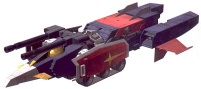 Model number: N/A Code name: G Armor Unit type: prototype tank/fighter subflight system Operator: Earth Federation Weight: 22.7 tons Construction: Luna Titanium Powerplant: Minovsky type ultracompact fusion reactor Propulsion: rocket thrusters Equipment and design features: sensors; can act as a subflight for 1 GM or Gundam type mobile suit Fixed armaments: 2x 60mm nose vulcan, 2x pivoting fore MPC, 2x 1-tube fore missile launcher (4 rounds each), 1x 4-tube aft missile launcher (1 round) Optional Armaments: 1x hardpoint, mounts 2x AA missile, 1x AG bomb, 3x ASW missile, 1x AS rocket, 1x external fuel cell, 1x M warhead or 1x Anti Beam missile Optional Equipment: None Pilot: "Hammerhead" Cherish Woods |