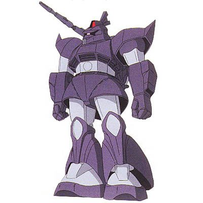 The Gelgoog is the Zeon's firm and deadly response to mass-produced RGM-79 GMs employed by the Federation. It is extremely fast and maneuverable, and arms a number of powerful weapons. Due to its ingenious universal hand plug, it can use virtually any Zeon or Federal weapon. Its standard armament includes a powerful and highly accurate beam rifle, more or less the same as the RX-78 Gundam's, a beam saber, and a large shield, capable of covering its entire body. Two verniers equipped in the Gelgoogs forearms can be removed for heavy 110mm machineguns for ground combat. The Gelgoog is extremely mobile, powered by nine (seventeen in the case of the High Mobility Variant) large thrusters. Numerous apogee motors and other jets stipple its body, giving it unprecedented maneuvering ability. It is also decently well armored, though still not quite as tough as the Lunar-titanium equipped Gundam. The Gelgoog is also very customizeable, being able to quickly switch between a standard armament, a fuel-guzzling high mobility variant, or an anti-battleship cannon variant. A removable backpack is the only exchanged feature.