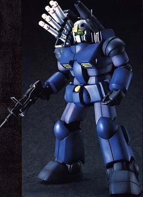 These units, referred to as "Harbor Defense Types" were only a minor modification of the Guncannon massed production type. One of their twin 200mm cannons has been removed and replaced with a mount for eight vertically-firing ASROCs (AntiSubmarine ROCket). After firing, the ASROCs flip over in flight, strike the water at high speed, and home in on the cavitation signature of the expected enemy targets. To this extent, the Harbor Defense Guncannons are intended for use as first-response units to enemy incursion. Their blue paintjob signifies them from the normal red of both stock and Mass Production Guncannons.