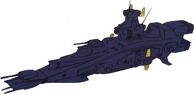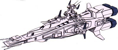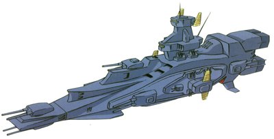 Unit type: space-use standard battleship Operator: Earth Federation Dimensions: overall length 327 meters; overall width 102 meters; overall height 96 meters Weight: 62900 tons Construction: titanium alloy Propulsion: 4 x rocket engine Equipment and design features: Salamis re-entry capsule Launch catapults: 0 Fixed armaments: 5x fore 2-barrel mega particle cannon turret, 2x aft 2-barrel mega particle cannon turret; 14 x 2-barrel 105mm antiaircraft machinegun turret; 4 x large missile launcher |