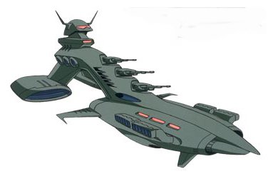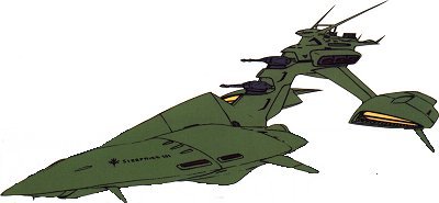 The Musai-class light cruiser is the standard ship of Zeon's Space Assault Force, and a key unit of the Mobile Assault Force as well. The Musai is a small and fast ship, capable of quickly entering and retreating from a combat zone. Though it is not nearly as heavily armed as the Federation's Salamis-class, its guns are placed more effectively to direct fire at a single target.