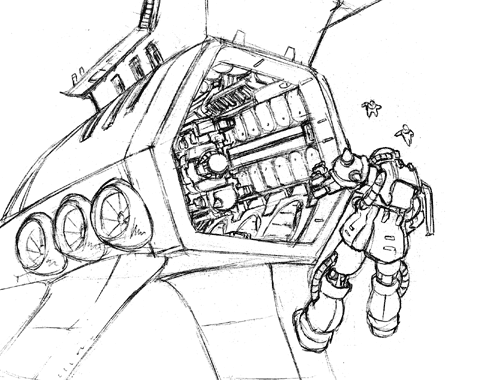 However, what this version made up for in brute force, it sacrificed in hangar capacity. The additional MPC-turret cut space out of the hangar, allowing for a mere 2 mobile suits.