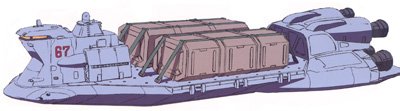 Unit Type: space cargo ferry Operator: Colony Management Core, Earth Federation Propulsion system: 4x rocket thruster Hangar capacity: 2 cargo, 1 mobile suit/2 fighters Launch catapults: 0 Fixed armaments: none Technical and Historical Notes A small bulk transport craft used by both the Colony Management Corporation and the Earth Federation, the aptly dubbed "Federation Transport Craft" has roughly twice the cargo capacity of your average shuttle, while maintaining similar maneuverability and speed. Like with most civilian vessels, it is unarmed. |
