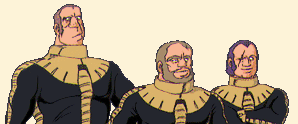 ![]() ![]() ![]() The Black Tri-Stars Some of the best mobile suit pilots of the war, the Black Tri Stars are Dozles personal elite force, Gaia, Ortega and Mash being known as the soldiers who sunk the Ananke at the battle of Lourm and captured General Revil. Famous for their black and purple colorscheme and teamwork related tactics, their fearsome Jetstreamm Attack has been unstoppable to this date. Now serving on the ground war as a special "gift" from Dozle to Garma, they are some of the strongest pilots on the surface of the Earth to date. ![]() ![]() ![]() ![]() The Midnight Fenrirs Although a larger corps than a single mobile suit team, the elite of the Midnight Fenrirs are currently stationed as border guards in North America, going on repeated skirmishes with the Desert Eagles and the Invincible Third. Led from California Base by Lieutenant Commander Gerhart Schmeisser, a veteran mobile suit pilot from the Riah Revolution but now an incapacitated rear lines commander, the Midnight Fenrirs are a formidable team. ![]() ![]() ![]() ![]() The Cyclops Team An old team with a long history together, the SS commanded Cyclops Team members are experts in the art of espionage and guerilla warfare, as well as established MSM pilots. Currently stationed defending the waters of New York, they are unforgiving soldiers who work as a well oiled machine, with a lot of commeraderie between them. ![]() The Karakals An expert mobile suit team stationed in South Africa, major Roy Greenwood is well known as an excellent mobile suit pilot, and has used his political clout to be sent one of the first harsh conditions Dom units for his personal use. The Karakals color scheme is a thick savanna camouflage, and their lighting fast ambushes are extremely effective. The Pink Panthers Experts at defending the shores of Northern Africa, the Pink Panthers are deadly opponents, using their jetskis to quickly move up to enemy targets before delivering the killing blow in hand to hand. Their bright pink colorscheme is seen as an insult by the Federation, but shooting one down is a difficult feat, especially amongst the desert climate in which their Zakus are so effective. ![]() Cima Garahau and the Cleopatra Famous for her cruelty and malevolence, Cima Garahau joined the military at a young age, and finds the power of her own command extremely appealing. Her Musai is one of the main patrols of Zeon occupied Earth Orbit, and when she is not attacking supply lines moving between Jaburo and Luna II, she is making spot raids on the asteroid itself. Her bridge chair is decorated with a white siberian tigers pelt, given to her by Vladivostok commander Antonov, from whom she recieves frequent love letters. ![]() Boone and the Falmel A man trained to captain both ships and submarines, Boone has a reputation for revenge and avarice against his enemies, and extreme comeraderie amongst his friends. He is one of Chars closest friends and companions, and is trusted with the Falmel, one of the finest pieces of Zeone engineering. Boone was angered that he could not go to Earth with Char, but will loyally patrol Earths Orbit until his triumphant return. |
