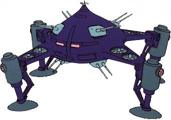 Fixed armaments: 4 x 2-barrel dorsal mega particle cannon; 4 x 2-barrel ventral mega particle cannon; 3 x 'leader,' electrical discharge weapon, delivers high voltage current over wide area