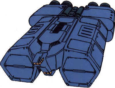 The boxy supply ship is exactly that: a box with engines. It has no combat potential whatsoever, as it is not intended to face enemy fire at any point. Its primary purpose is to service Federal warships in the field, but it is also utilized to transfer bulk cargo. During the opening stages of the One Year War, Federal tacticians, faced with a sudden lack of a suitable transport for their FFS-3 Saberfish, pressed the Columbus into service as a carrier craft. The results were less than spectacular: the space fighters, already outclassed by Zeon's Zaku II mobile suits, were frequently destroyed before they could launch on account of inadequate systems to get them in the air rapidly. The thinly armored Columbus-class ships also frequently fell prey to marauding Zeon mobile suits as well as crossfire from dueling warships. Following the end of the Lourm Campaign, Federation fleet commanders still lacked a means to carry their fighters, not to mention their brand new and highly expensive mobile suits, so the battered and beaten Columbus soldiered on (the new Pegasus-class carriers, such as the White Base, were ineconomical for mass production). The Columbus, though it is a box, is a versatile box. Its twin cargo bays can be refitted to carry either fighters, or standard mobile suits, as well as any combination thereof (for instance, any particular Columbus could carry fifteen Saberfish in its portside hangar and five RGM-79 GMs in its starboard hangar). However, while it may resemble a box, it is a wet paper bag as far as vitaliy and durability is concerned, and also a prime target for enemy mobile suit pilots with enough balls to get near its escorts. |