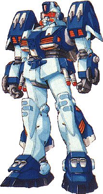 Following a great deal of wasted budget funds and numerous mobile suits being left on the bottom of the Amazon River, Federal engineers finally rolled out a suitable model: the RAG-79 Aqua GM. Unlike the earlier GM Diver, the Aqua GM focused on being in the water full-time; a premise not unlike the Zeon's MSM-03 Gogg. Rather than amphibious operations, the Aqua GM was constructed with the intention of being an anti-mobile suit unit. Its armament consists almost entirely of torpedo-type weapons; its sole equipment otherwise is a single surface-to-surface missile launcher, intended to bombard seashore bases once their MSMs had been dealt with, to remove the necessity of going ashore. Its primary weapon are two sets of quadruple torpedo launchers, mounted in the mobile suit's shoulders. Intended chiefly to down other marine mobile suits, they don't carry much payload but are slightly faster in the water than some Zeon models. For attacking heavier targets, two large torpedoes are provided on the mobile suits forearms. Finally, for close-range combat, four miniature beam sabers (their blades are styled in the shape of a pick) are mounted at the mobile suit's skirt armor for quick access. In addition, the GM Divers old underwater use machinegun and grenades are armable, for use in massed operations and in case of an aquatic landing. However, these are intended to not be necessary. In actual combat the GM Aqua turned out to be an amazing success, boasting more speed, maneuverability and firepower than the Duchy's MSM-03 Gogg underwater. Its amphibious capabilities are next to nothing, but it didn't need to go ashore thanks to its ability to assist Ground Based operations via the missile launcher. It also corrects the Gogg, Acquy and Z'Goks major flaw - though they can only move underwater vertically, they have to fire horizontally, forcing them to stop moving in order to fire (the Hygogg and Z'Gok E later corrected this problem.) The GM Aqua can fire all of its armament while moving straight at its target.