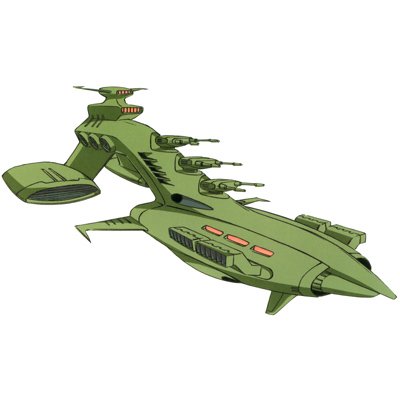 Unit type: space-use light cruiser Operator: Zeon Duchy Dimensions: overall length 234 meters; overall width 98.4 meters; overall height 79.4 meters Weight: 26200 tons Construction: High Tensile Steel Propulsion: 2 x rocket engine Design features: Komusai shuttle Hangar capacity: 1 infantry, 3 MS + 2 MS (Komusai) Launch catapults: 1 aft Fixed armaments: 3 x 2-barrel mega particle cannon turret; 10 x missile launcher; 2 x large rocket launcher; 2x fixed AA machinegun (Komusai) |