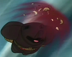 The Z'gok-E incorporates an entirely new frame, reactor, control system, and is almost a new mobile suit in its own regard. Even more thrusters have been added to increase its land mobility and underwater speed; its 118 knot crusing speed has yet to be trumped, and it will likely continue to hold that record into the future. For missions where maximum speed on land would be required, an ejectable, single-use booster pack can be equipped, offering the Z'gok-E a ridiculous degree of mobility for a brief period of time. The Z'gok-E maintains the original Z'gok's armament, but takes everything to a higher level of efficiency. Its mega particle cannons have been modified with a large reserve battery, allowing excess power to build up inside the cannon. This allows the M-particle energy to be rapidly discharged in a machinegun-like burst, or as a single massive shot. The head-mounted missile launchers have been replaced with torpedoes for increased firepower against other marine targets, and an additional claw on each arm has been added as a sort of thumb, giving the Z'gok-E limited manipulator capability.